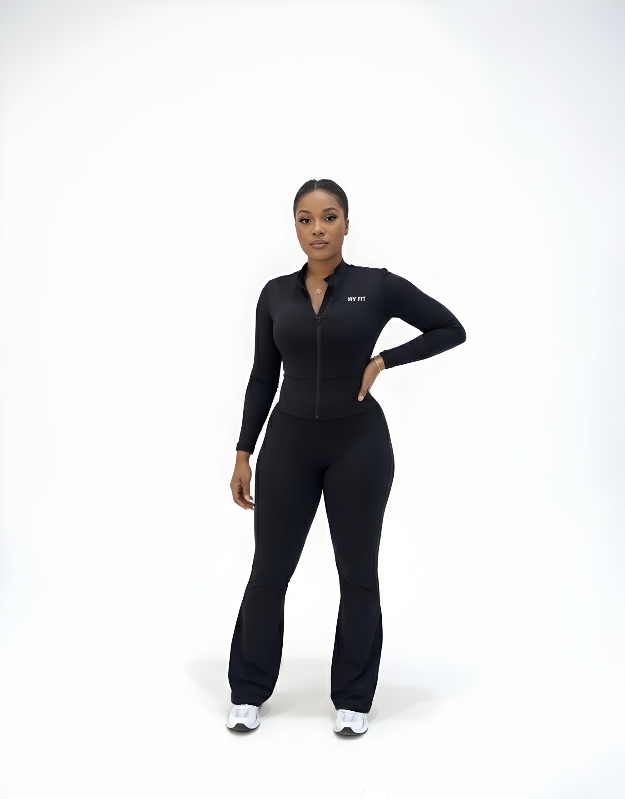 Adoptez l’élégance sportive avec l’ensemble noir MY FIT, une tenue deux pièces sophistiquée qui allie style intemporel et performance. Cet ensemble sportswear femme se compose d’une veste zippée ajustée manches longues et d’un pantalon flare taille haute, parfaits pour le fitness, le yoga, la danse ou vos sorties athleisure chic.